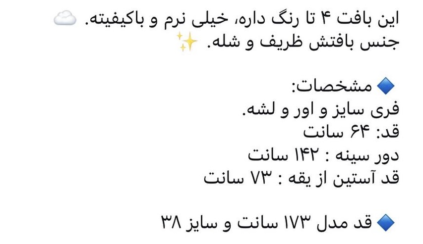 بافت ترنم نه تنها ظاهری شیک و مدرن به شما میدهد، بلکه با دوخت ایرانی و کیفیت ممتاز خود، گزینهای عالی برای روزهای سرد سال است. اگر به دنبال لباسی هستید که هم راحت باشد و هم استایلی چشمنواز بسازد، بافت ترنم انتخابی بینقص برای شماست.