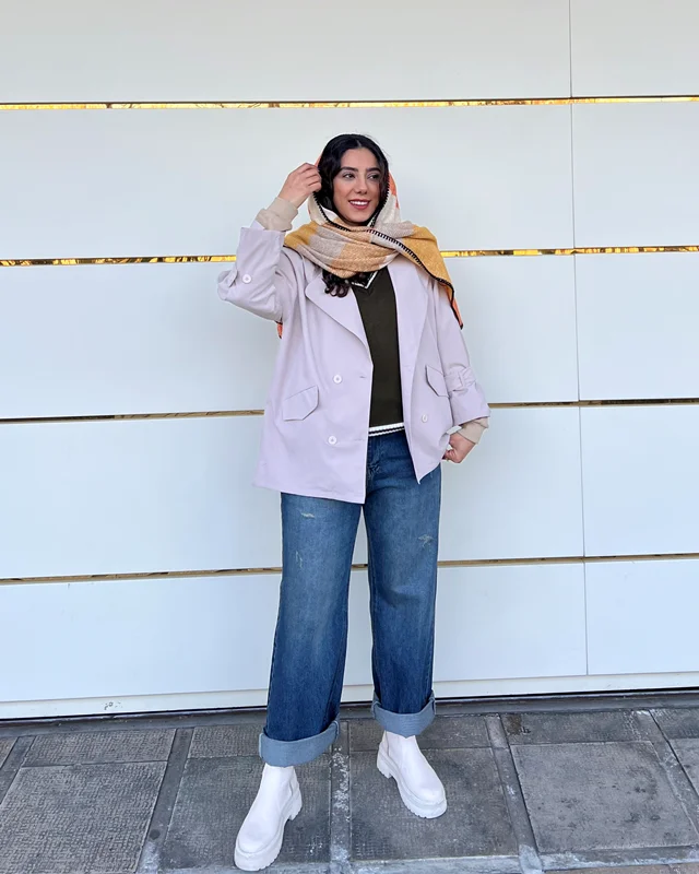 •استایل روزمره: این ترنچ کت را با یک تیشرت ساده و شلوار جین ست کنید. افزودن یک کفش کتانی سفید، ظاهری کژوال و شیک به شما میدهد.