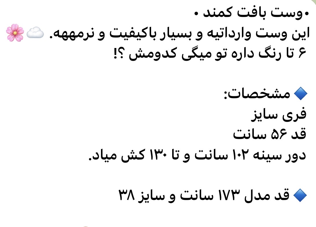 وست بافت کمند، انتخابی بینظیر برای روزهای خنک شما! این محصول با طراحی شیک و کیفیت بافت عالی، راحتی و زیبایی را به ارمغان میآورد. مناسب برای هر استایلی، از کژوال تا رسمی. با وست بافت کمند، جذابیت و خاص بودن را به استایل خود اضافه کنید. همین حالا خرید کنید و تفاوت را احساس کنید!